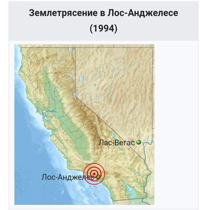 Hi! Today I want to tell you about the destructive earthquake. It happened on January 17, 1994 at 5 am. It was in the suburbs of Los Angeles, California. The magnitude of the earthquake was 7 points. Despite the fact that the magnitude of the shock was 7, the shaking was felt not only on the coast of the United States, OO and Las Vegas. Las Vegas was located more than 350 km from Los Angeles. 57 people died, more than 8 thousand people required medical assistance. The 1994 Los Angeles earthquake was the highest in US history and, according to various estimates, was among the top five most destructive natural disasters in the US. Now there is everything fine! That's all I wanted to say! Bye!)