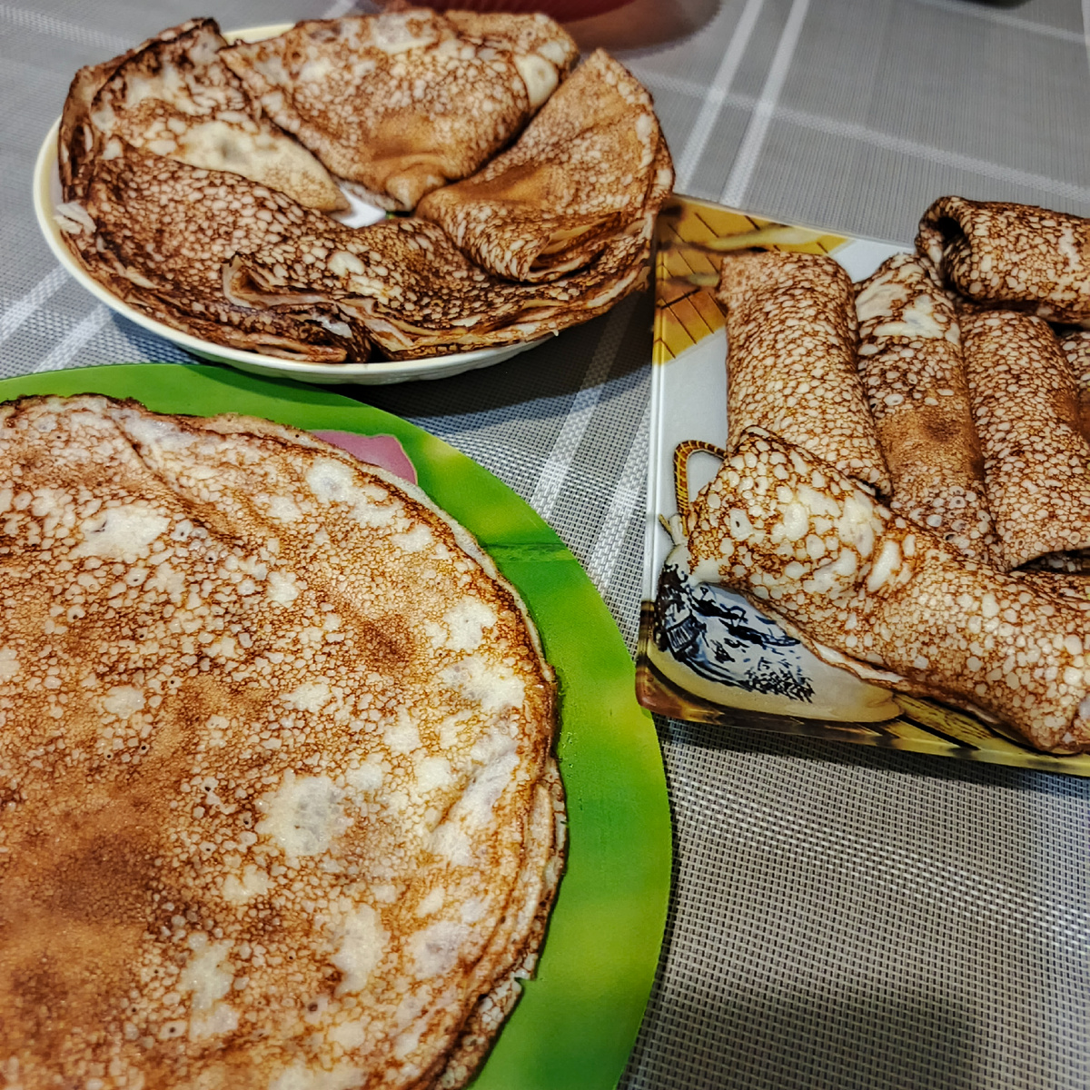 Здравствуйте! Всю неделю не показывала свои блины, потому что их не было. И только вчера порадовала себя и домашних блинами. Сделала со сладким творогом, те, что трубочкой свернуты, и с сыром, они в треугольниках.