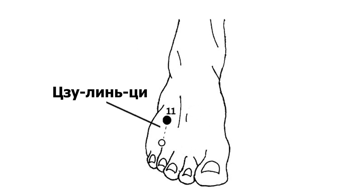 Точка цзу-линь-ци («течение сверху вниз по ноге») расположена между 4-й и 5-й плюсневыми костями, в углублении у латеральной стороны сухожилия разгибателя мизинца стопы. Дополнительный эффект от воздействия на точку: избавление от застоя ци в печени (для него характерны ощущение распирания и боль в подреберье, мастопатия и дисменорея и другие нарушения менструального цикла у женщин); лечение таких болезней, как боль в наружном углу глаза, боль в подреберье, боль и припухлость в подмышечной области, боль в одной половине головы, боли в области сердца и одышка. Как воздействовать на биологически активные точки я написала для вас в этой статье - https://dzen.ru/a/Z48mxUnbyVf33jka Если вам нравится информация про биологически активные точки, не забывайте ставить 👍 и подписываться. Если вы хотите более глубоко погрузиться в изучения целительных точек то рекомендую приобрести и прочитать эти книги: "Женское и мужское здоровье. Атлас целительных точек, приемы, техники" Лао Минь - https://ya