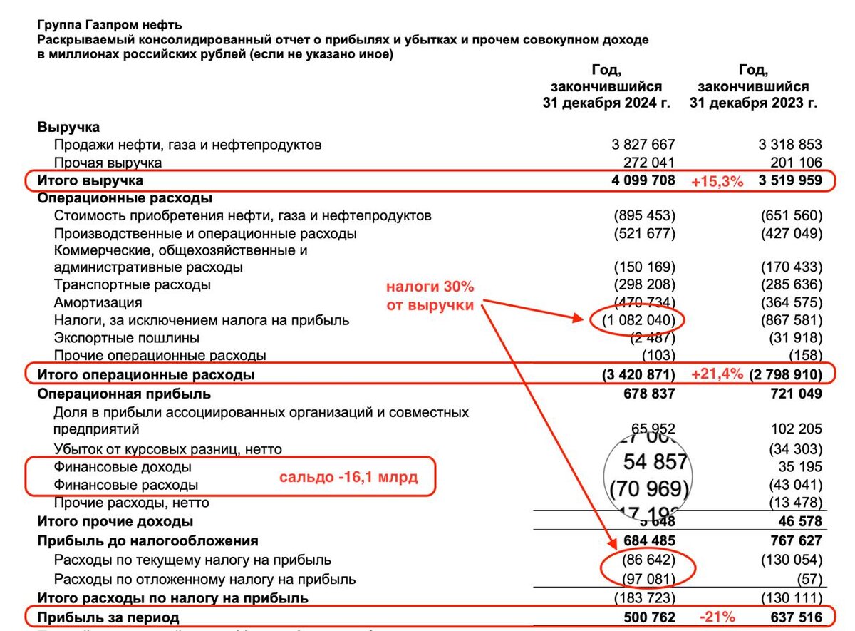 Компания много лет подряд выступала одной из лучших идей в нефтяном секторе. Сочетание лояльного руководства, устойчиво высоких показателей и дивидендов обеспечивало акциям дочки Газпрома внимание со стороны частных инвесторов. Что изменилось в 2025 году? Почему акциям Газпромнефти не удалось поучаствовать в ралли последних месяцев? Давайте разбираться. Сразу после новогодних праздников США ввели прямые санкции против Газпромнефти и ее гендиректора Александра Дюкова. Сами по себе санкционные списки ничего не значат, однако в будущем могут повлиять на снижение объемов продаж. Тут стоит отметить, что тому же Лукойлу или Роснефти это не мешает, но как отреагирует Газпромнефть — вопрос. А что по результатам за 2024 год? Итак, выручка компании за отчетный период выросла на 15,3% до 3,8 трлн рублей. По итогам полугодия рост достигал 30%, поэтому налицо замедление темпов роста к концу года. И это при условии, что курс реализации нефти достигал пиковых значений. Проблема кроется в снижении цен