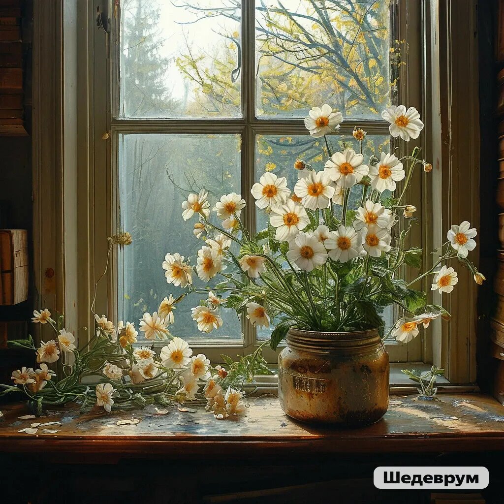 На окне, стояли в банке