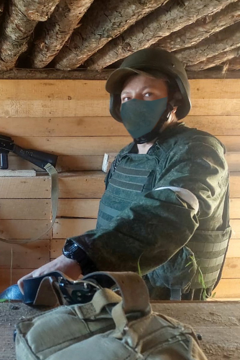 Наша основная задача — оборона опорного пункта. Надо быть начеку. Не знаешь, что и откуда прилетит. Дроны страшно жужжат, такой звук со свистом. Однажды дрон пролетал близко, и я сбил его из антидронового ружья (современное устройство, предназначенное для нейтрализации БПЛА и коптеров). Уже больше двух лет нахожусь на первой линии обороны. Мы дважды выезжали на учения в тыл, каждая рота — по своему профилю.