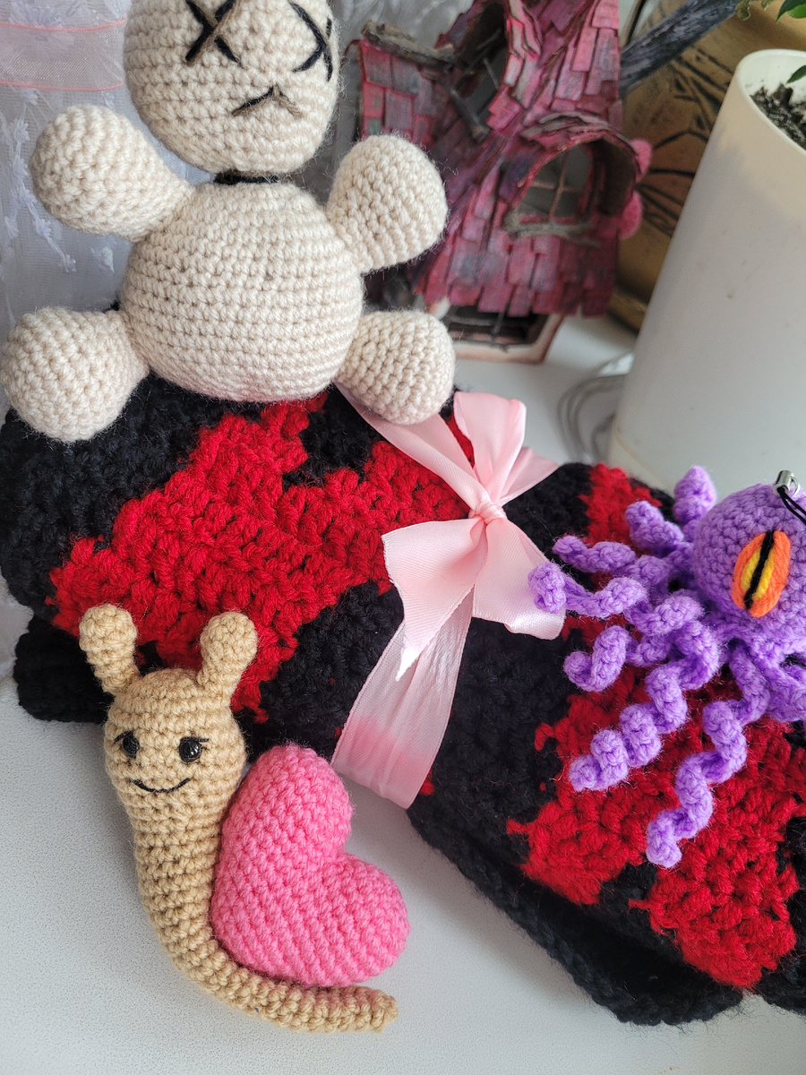 Закончила большой заказ из Питера! Впервые вязала шарф на заказ, обычно только игрушки☺️ Но все бывает в первый раз! Это был хороший опыт! Пряжу взяла Alize mibi 25% шерсти, 75% акрил Пряжа мягкая и нежная и очень приятная на ощупь! Вязать было приятно! Шарф заказали с "принтом" ☺️. 🤘🤘🤘🤘🤘🤘🤘🤘🤘🤘🤘🤘 У меня был небольшой опыт в этом Вот что вязала! Я люблю когда у меня заказывают любители игры World of Warcraft. Они никогда не отказываются от заказа, если им что-то не понравится, они говорят об этом, и я переделываю или перевязываю! Спасибо им за это🤘 Вместе с шарфиком заказали игрушки🫶 Вот весь заказ! Вперед👉 к следующим заказам! Заказать мои игрушки можно туточки!