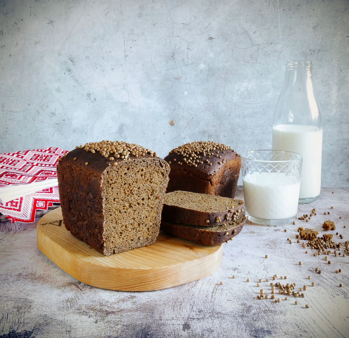 Этот рецепт отличается от рецепта по ГОСТ несущественно, но отличие очень важное: хлеб выпекается без использования пшеничной муки. Несмотря на ее отсутствие, хлеб получается довольно пышным, мягким, с хорошим подъемом. Все благодаря наличию в составе ржаной цельнозерновой муки, отруби которой усиливают брожение. Делают свое дело и патока, и солодовая заварка, и добавленный сахар. Еще раз убеждаемся, что Бородинский хлеб, по крайней мере изначальный вариант его рецепта, не требовал использования тогда дорогой в России пшеничной муки. Именно такой хлеб или очень похожий на него могли печь в пекарне Спасо-Бородинского монастыря, основанного на месте Бородинской битвы, где, по легенде, и придумали впервые печь черный поминальный хлеб, осыпанный кориандром или тмином, напоминавшем о картечи. Вот что сообщает об истории создания рецепта Кордонская Мария, журналист газеты Труд, в своей заметке «Монашкин хлеб»: