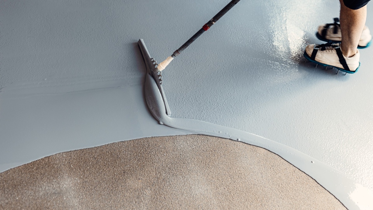 - Получившийся раствор выливаем на пол и распределяем раклей. Если площадь заливки небольшая, можно воспользоваться зубчатым шпателем. После этого прокатываем поверхность игольчатым валиком для того, чтобы выпустить воздух из залитой смеси.
