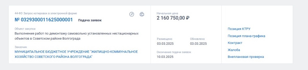 В списке на этот раз фигурируют 38 адресов, на каждом из них должен исчезнуть тот или иной объект. Заказчиком закупки выступает МБУ ЖКХ Советского района Волгограда. В описании к закупке говорится, что все объекты должны будут зачистить до 1 июля этого года. Перед тем, как начать демонтаж, подрядчик должен будет опечатать окна и двери. И, если необходимо, оборудовать сносимое запорными устройствами, составить опись имущества, которое находится внутри. Как только демонтаж будет завершен, те, кто сносит объект, обязаны будут составить акт о сносе. Еще подрядчик в течение дня должен будет вывезти снесенный объект и то, что в нем хранилось, в место хранения. Все это может храниться на складе не меньше месяца, пока не будут получены сведения о нужности снесенного и пока город не признает право собственности на все это. В противном случае после окончания срока все это будет считается уже не больше, чем хлам.