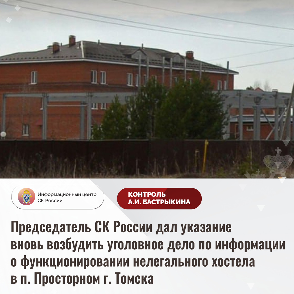 Председатель СК России дал указание вновь возбудить уголовное дело по информации о функционировании нелегального хостела в п. Просторном г. Томска В комментариях в телеграм-канале Информационного центра СК России размещено обращение по вопросу продолжающегося функционирования нелегального общежития для мигрантов на территории хлебозавода ООО «Колос» в поселке Просторном города Томска. Несмотря на то, что пять лет назад вынесено решение о закрытии хостела, директор предприятия до настоящего времени допускает проживание иностранных граждан в указанном здании. Более того, руководством завода организовано возведение дополнительного строения для размещения мигрантов. Многочисленные обращения в компетентные органы результатов не принесли. Ранее А.И. Бастрыкин поручал представить доклад по указанной ситуации. В СУ СК России по Томской области возбуждались уголовные дела. Постановления о возбуждении уголовных дел отменены надзирающими прокурорами. Председатель Следственного комитета Российско