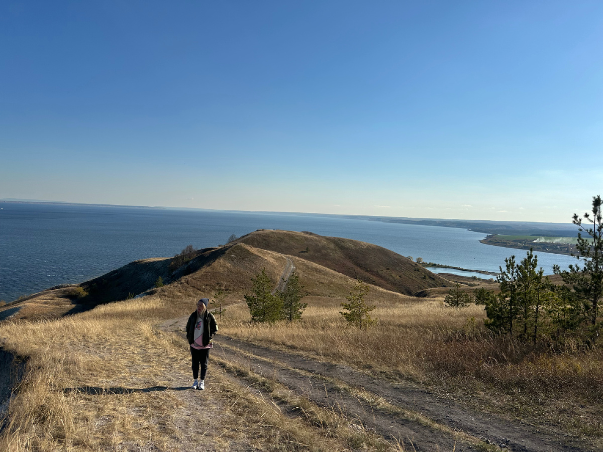 Первые пять минут дорога проходит сквозь густой лес, но затем деревья расступаются, и перед нами открывается захватывающая панорама Волги. Особого внимания заслуживают меловые холмы, придающие местности уникальный облик.