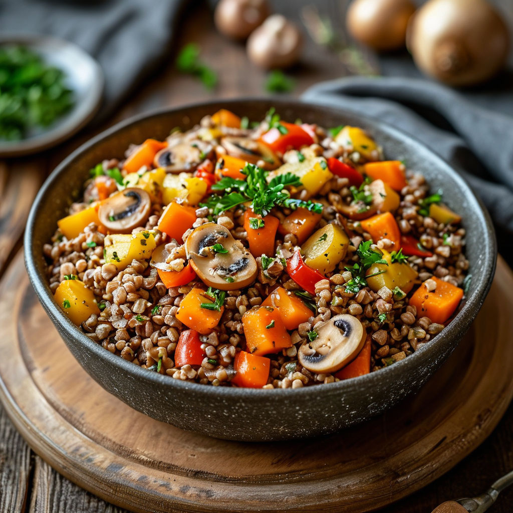 - Сытное: Гречка — источник железа и клетчатки, грибы дают «мясной» вкус без мяса.