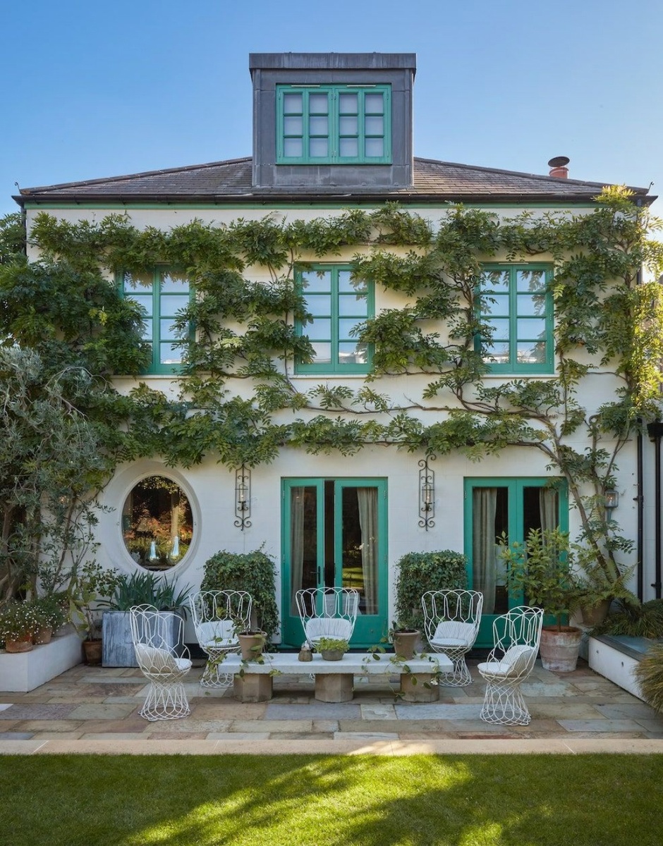 Для Лондона дом дизайнера принтов на ткани Нейши Кросленд, который они построили с мужем в стенах старой конюшни Клэпхэм-Джанкшен, выглядит совершенно нетипично. В оживленной части города им удалось создать зеленый уголочек европейского юга с атмосферой характерной для Франции или Италии. Этот район Лондона с оживлённой развязкой сильно пострадал от бомбардировок во время Второй мировой войны. От бывших конюшен остался только мощёный двор, окруженный кирпичными стенами высотой 4 метра. Именно его и приобрели супруги в 1993 году. Место казалось очень уединённым, поэтому пара решила создать свой кусочек сельской местности с садом и фонтанами. Проект супруги реализовывали поэтапно на протяжении 30 лет. Это единственный дом, который Нейша когда-либо оформляла, и он развивался и рос вместе с ней (как с дизайнером) и её семьёй - в этом доме родились и выросли дети супругов. Когда Нейша разочаровалась в том, что не может найти плитку или ковры, которые хотела бы видеть в своем интерьере, она