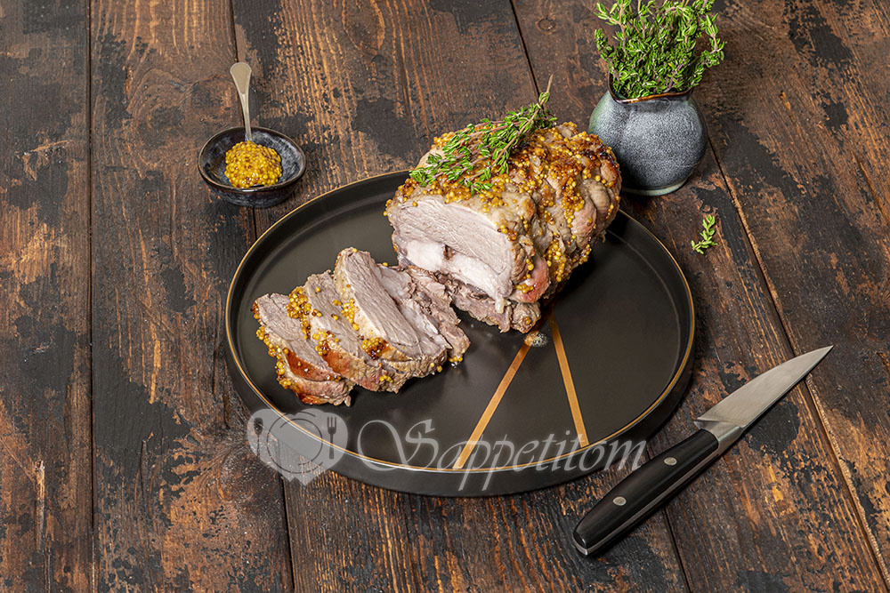 Формула идеальной буженины из свинины выглядит так: На самой верхушке буженины - горчичные зерна, они своим примером вдохновляют корочку быть румяной. Корочка помогает мясу не крошиться и не ломаться. А внутри сочное и нежное мясо замаринованное в яблочном рассоле, оно обеспечивает вау-эффект. У каждого ингредиента своя ответственность, но главное, что ими движет общая цель - стать нежным, ароматным и аппетитным мясом, запеченным в духовке и порадовать Вас в качестве мясной нарезки на праздничном столе или стать вкуснейшими бутербродами, которые так удобно взять на работу. свинина (окорок, шея) - 1 кг.