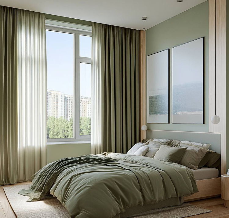 Скрытые карнизы позволяют использовать шторы на всю высоту комнаты, что добавляет дополнительный визуальный эффект "распахнутого пространства". Это особенно актуально для панорамных окон или стеклянных дверей.