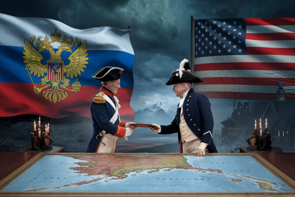18 октября 1867 года в половине четвёртого пополудни началась помпезная процедура смены флага на флагштоке перед резиденцией главы Аляски. Двое младших офицеров приступили к спуску флага Русско-американской компании, но полотнище запуталось в верёвочных креплениях на самой верхушке, а подъёмный трос и вовсе оборвался. По команде несколько моряков бросились взбираться наверх, чтобы освободить разорванное в клочья полотнище, застрявшее на мачте. Первому добравшемуся до флага матросу не успели скомандовать, чтобы он спускался вместе с флагом, а не сбрасывал его, и тот швырнул полотнище вниз. Флаг угодил прямо на штыки российского почётного караула – событие, которое могло бы стать настоящим праздником для любителей мистических совпадений и конспирологических теорий.