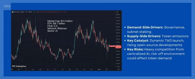 В преддверии запуска растет интерес институциональных инвесторов, чему способствовало включение TAO в дорожную карту Coinbase и децентрализованный фонд искусственного интеллекта Grayscale.