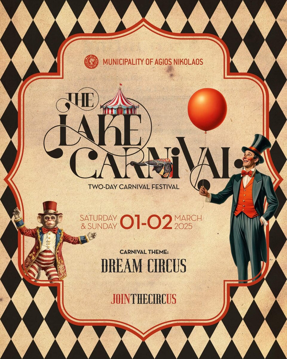 В 2024 году карнавал в курортном городке Агиос Николаос под девизом «Мир воды» оставил неизгладимое впечатление. Участники и гости были в восторге от этого опыта. В 2025 году планка праздника была поднята еще выше. Муниципалитет города представил карнавал у потрясающего озера Вулизмени (Lake Carnival). Тема этого года – «Цирк мечты» (The Circus of Dreams), где воображение должно встречаться с реальностью. Главные мероприятия карнавала - праздника Апокриес проходили в городе 1 и 2 марта, а предшествовали им торжества 21-22 февраля в городке Неаполи рядом с Агиосом Николаосом. Главное событие – грандиозный парад – стартовало в воскресение 2 марта после 15.00 от марины города. Карнавал прошел по маршруту: улица Sofokli Venizelou – центральная площадь – порт и далее – театр на озере. Карнавальные команды шествовали по этому маршруту около полутора часов. Костюмированные фестивальные команды представили разных артистов цирка: клоунов, дрессировщиков, силачей, карточных фокусников, кукловодо