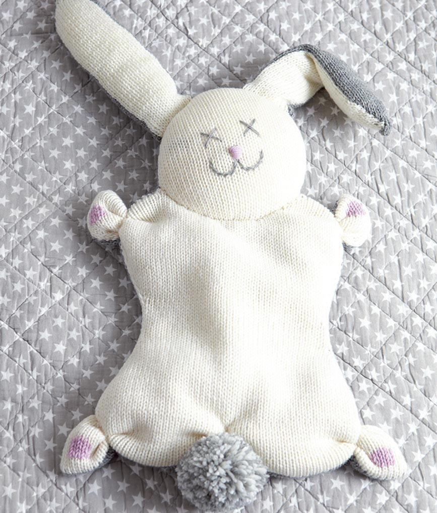 Подушка Заяц спицами ВАМ ПОТРЕБУЕТСЯ Пряжа (75% шерсти, 25% полиамида; 210 м/50 г) – по 150 г белой и коричневой меланжевой, остатки розовой; спицы №4; наполнитель. УЗОРЫ ЛИЦЕВАЯ ГЛАДЬ Лицевые ряды – лицевые петли, изнаночные ряды – изнаночные петли. ДЕКОРАТИВНЫЕ УБАВКИ С правого края: кром., 1 лиц., 2 п. провязать вместе лицевой. С левого края: вязать до последних 4 п. ряда, затем 2 п. провязать вместе с наклоном влево = 1 п. снять, как при лицевом вязании, следующую петлю провязать лицевой и снятую петлю протянуть через провязанную, 1 лиц., кром. ДЕКОРАТИВНЫЕ ПРИБАВКИ С правого края: кром., 1 лиц., из протяжки вывязать 1 лицевую скрещенную. С левого края: вязать до последних 2 п. ряда, затем из протяжки вывязать 1 лицевую скрещенную, 1 лиц., кром. ПЛОТНОСТЬ ВЯЗАНИЯ 18 п. х 29 р. = 10 х 10 см, связано лицевой гладью в 2 нити. ВНИМАНИЕ! Изделие вяжется в 2 нити. ВЫПОЛНЕНИЕ РАБОТЫ ПЕРЕДНЯЯ ЧАСТЬ ТУЛОВИЩА Набрать белой пряжей в 2 нити 66 п. и вязать лицевой гладью рядами в прямом и обрат