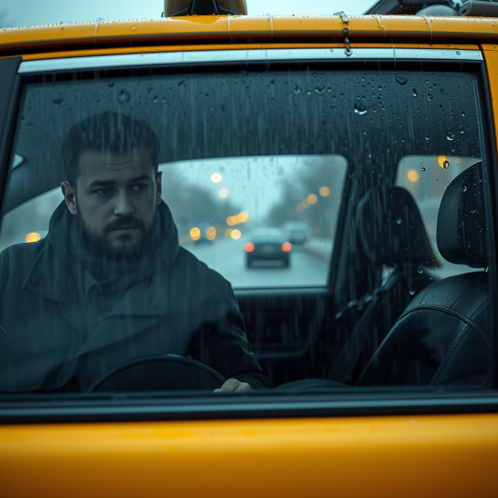Дождливым октябрьским вечером таксист Михаил, как обычно, патрулировал окраины города в поисках клиентов. Дождь барабанил по крыше его старенькой «шестёрки», а дворники усердно, но без особого энтузиазма отбрасывали потоки воды. Время близилось к полуночи, и на улицах почти не было людей — только редкие фонари разгоняли тьму да случайные капли дождя, сверкавшие в свете фар. Михаил уже собирался ехать домой, когда заметил одинокую фигуру под желтоватым светом уличного фонаря. Человек стоял у обочины, подняв руку, чтобы остановить машину. Таксист притормозил. — Куда едем? — спросил он, глядя в зеркало заднего вида. В салоне появился мужчина средних лет, одетый в длинное серое пальто и шляпу, которые странно контрастировали с современным городом. Его лицо оставалось в полумраке, но глаза блестели, как два уголька в ночи. — В центр, — произнёс пассажир низким хриплым голосом. — Но не просто так... Я хочу кое-что вам показать. Михаил удивлённо поднял бровь. За годы работы таксистом ему час