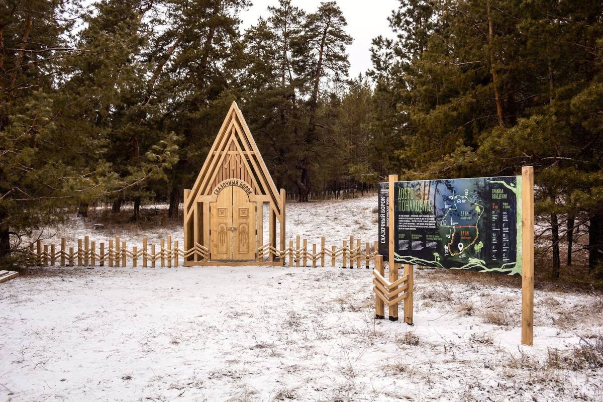 Новая экотропа, которую мы создали для национального парка Бузулукский бор. Маршрут пролегает по урочищу Борок, и сказочный он неспроста: здесь, на песчаных дюнах, оставленных древним руслом реки, растут реликтовые сосны необычных, причудливых форм. Это одно из тех мест, которые надо прочувствовать, чтобы понять. Перед каждым информационным аншлагом мы разместили небольшие стенды с вопросами, над которыми можно поразмыслить несколько минут: какие запахи вы чувствуете? Бывает ли соснам одиноко? Кто построил эти замки из песка? Их задача — дать «пищу для ума», заинтересовать темой, обратить внимание на что-то заранее. С Борком связано множество народных поверий, поэтому о местной природе мы рассказали с двух точек зрения: экологической и фольклорной. Например, почему сосны в Борке «танцуют»? Есть научное объяснение — сухость почвы, недостаток минералов, и сказочное — пляски лесных духов. Дизайн стендов поддерживает мистическую концепцию — таинственная сосновая чаща, полутени, туманная ды