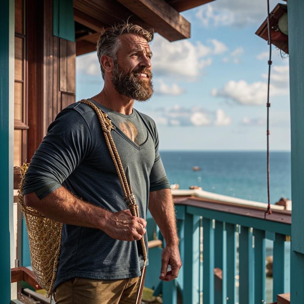 Мужчина аккуратно отложил свою работу и разогнулся. Нехотя встав, он расправил плечи и недовольно посмотрел на настырную тетку. Нет, выглядела она неплохо - широкополая шляпа элегантно сидела на на ухоженной головке, раскачиваясь от ветра. С моря дул приличный бриз, нагоняя влажный воздух.
