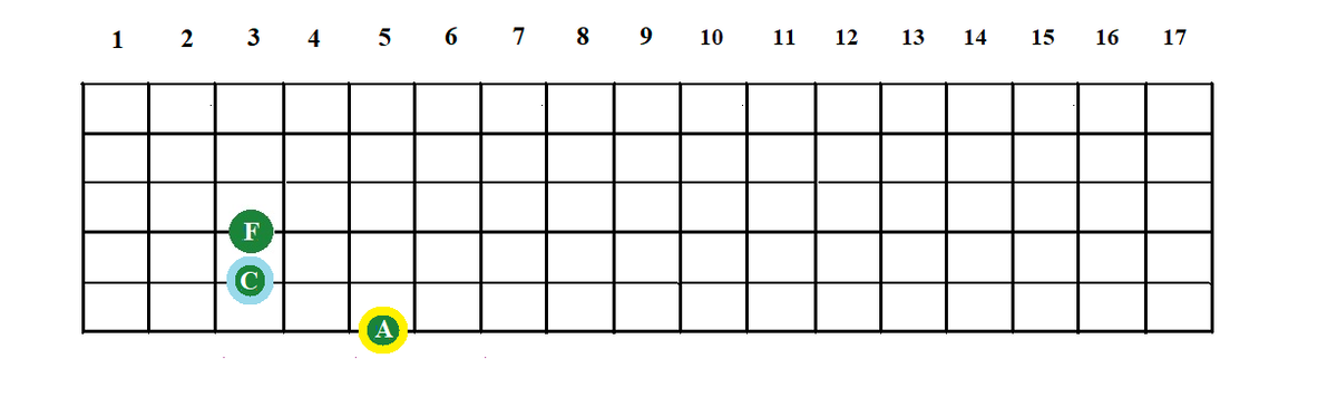 В этом варианте все нижние (терцовые) ступени расположены на 6-й струне. Мы используем ту же тональность - Fdur (фа-мажор):
