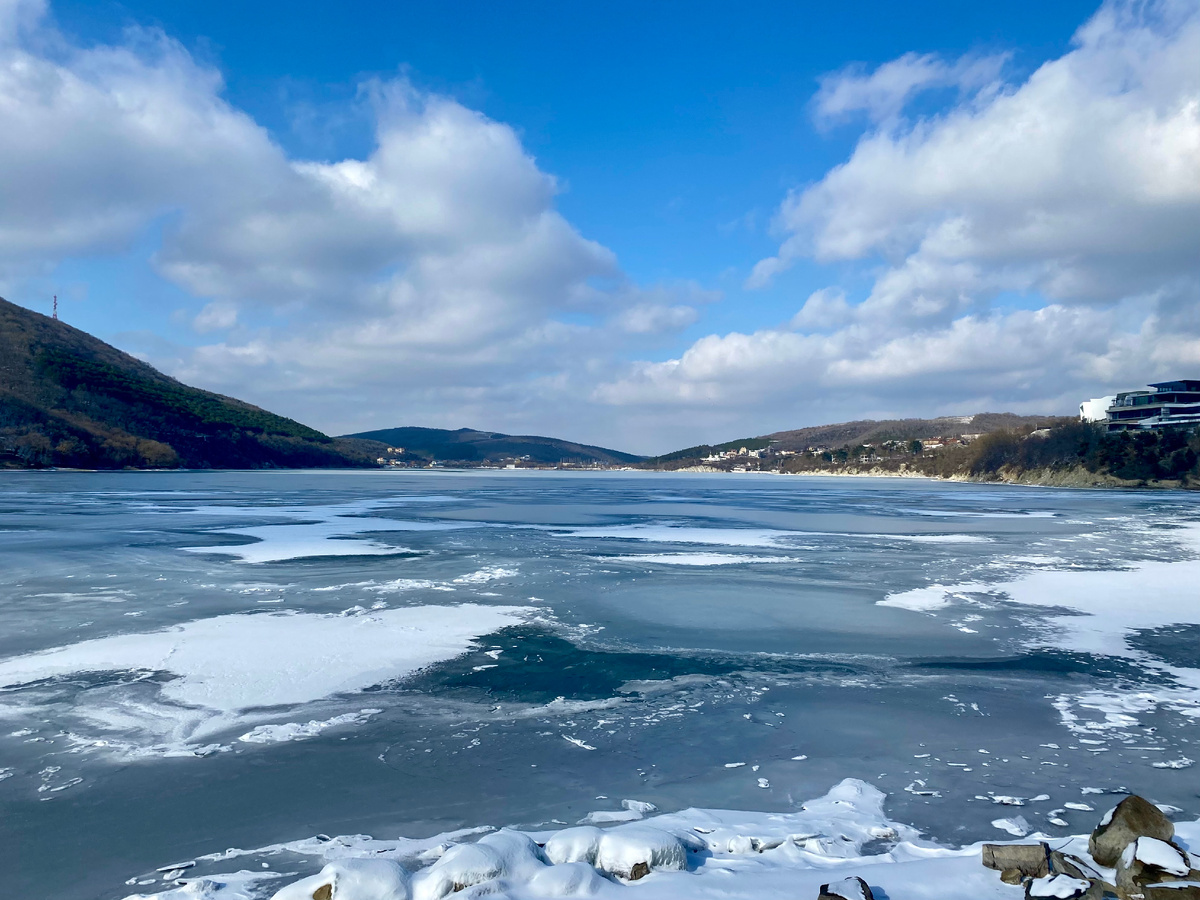 Конец февраля — начало марта в Абрау-Дюрсо самый что ни на есть несезон. Особенно в такие холода, какие выдались в этом году. Но туристов у нас сейчас много, есть повод — замерзло озеро Абрау! Явление очень редкое, хоть и не уникальное. До нас дошли фотографии начала ХХ века, на которых мы видим замерзшее озеро, на льду которого стоят люди. Старожилы Абрау-Дюрсо помнят много морозных зим, особенно суровым выдался рубеж 50-60х годов. «— Моя мама в 1956 году приехала в Абрау-Дюрсо, — с теплом вспоминает Инна Киреева. — Она сама с Урала, к зимам привыкшая. Уехала как раз подальше от зимы. И вновь в настоящую зиму попала: большие сугробы, полностью замерзшее озеро! И даже хлеб из Новороссийска в село привозили на гусеничных тракторах. Иначе было не добраться!» (по материалам газеты «Жизнь Абрау») Из последних лет больше всего запомнилась зима 2009 года, когда по воспоминаниям абраусцев «Была настоящая зима! Мы ходили по замерзшему озеру. И машины, и мопеды по нему ездили! А на праздник Кре