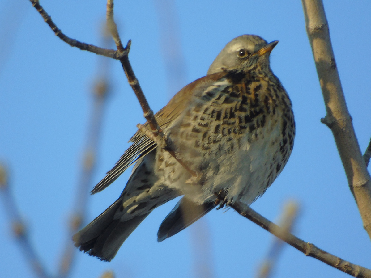 Поймать в кадр дрозда-рябинника, принимающего солнечные ванны, удалось заместителю начальника Минусинской лесопожарной станции Максиму Дрюкову. И это большая удача! Слишком уж это пугливые и осторожные птицы. Но здесь дрозд и не думал прятаться, распушился под тёплыми лучами и периодически зажмуривался от удовольствия. Там же, на берегу протоки Енисея возле Минусинска, удалось запечатлеть ещё и влюблённую парочку рябинников. Самки и самцы этих дроздов в одном пёстром цвете. Перья плотные, смазанные у основания кожным салом, что защищает от промокания. Из-за черной «подводки» вокруг глаз может показаться, что рябинник вечно недоволен и сердит. Вы слыхали, как поют дрозды? Так вот, этот хит точно не про рябинников. Их пение неприятное, трескучее, стрекочущее. При опасности громко кричат, предупреждая свою колонию и других птиц о появлении врага. Главный способ защиты рябинников - обгадить противника. Это часто сокол или ястреб. Перед атакой дрозд угрожающе поднимает хвост. Уже на этом ме