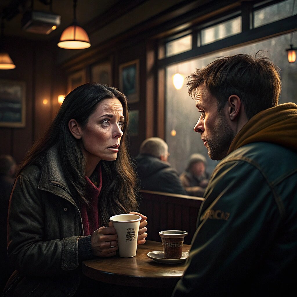 Кафе было небольшим, с приглушённым светом и чуть затхлым запахом выпечки. За соседним столиком пожилой мужчина жевал круассан, делая вид, что не подслушивает.