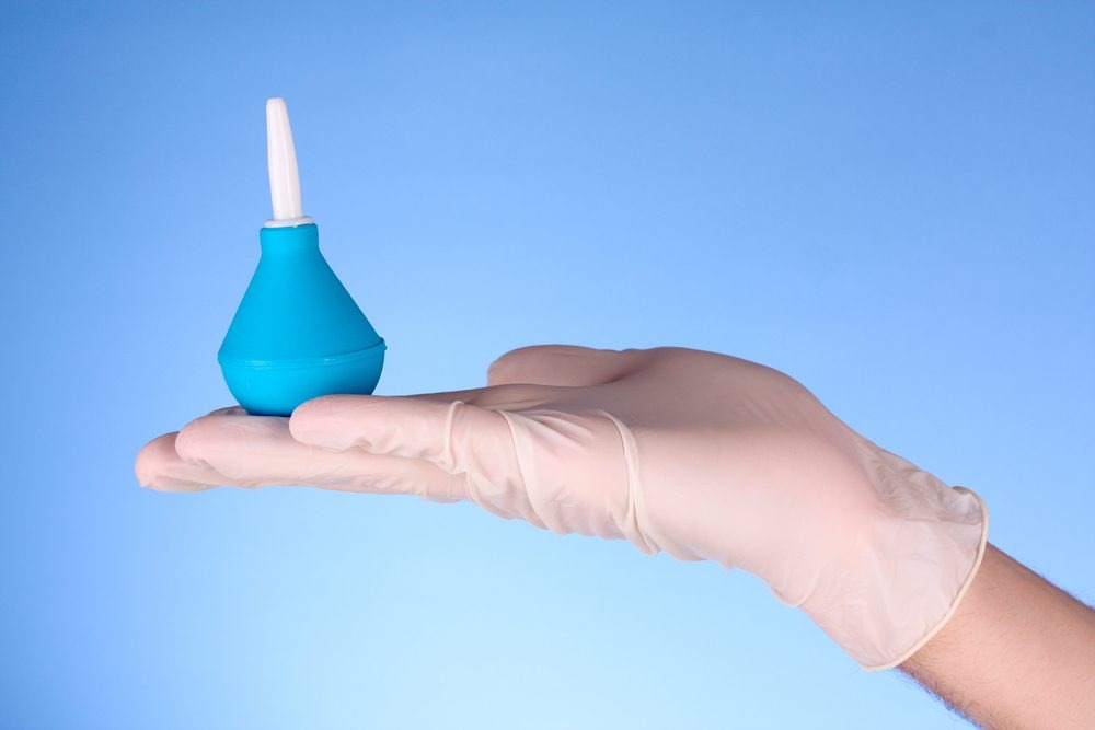 Введите наконечник спринцовки в прямую кишку примерно на 1,5 см и осторожно, медленно и постепенно надавливайте на грушу, пока она не опустеет.