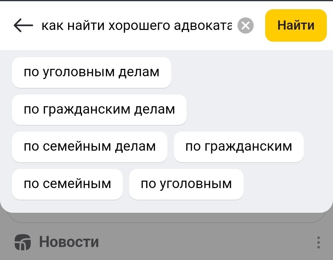 2. Интернет - адвокат ищется путем анализа размещенных в сети объявлений.