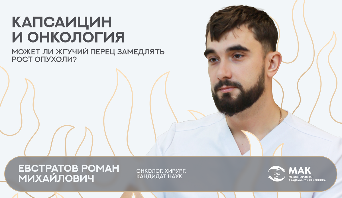 Врач МАК, Евстратов Роман Михайлович – хирург, онколог, кандидат медицинских наук – принял участие в программе познавательного проекта “Знание-сила” на 5 канале, где рассказал о возможном влиянии капсаицина на опухолевые процессы. Что известно о капсаицине? Капсаицин – активное вещество, содержащееся в жгучем перце, которое изучается в рамках онкологических исследований. Научные данные показывают, что он может влиять на механизмы роста опухолевых клеток, способствуя замедлению их деления, препятствуя образованию новых сосудов, питающих опухоль, а также активируя процессы запрограммированной гибели раковых клеток (апоптоз). Однако важно понимать, что капсаицин не является самостоятельным методом лечения онкологических заболеваний. Он может рассматриваться исключительно как вспомогательный компонент, а основное лечение должно назначаться и проводиться врачом в соответствии с современными стандартами и протоколами. Онкологические заболевания требуют комплексного подхода, включающего хирур