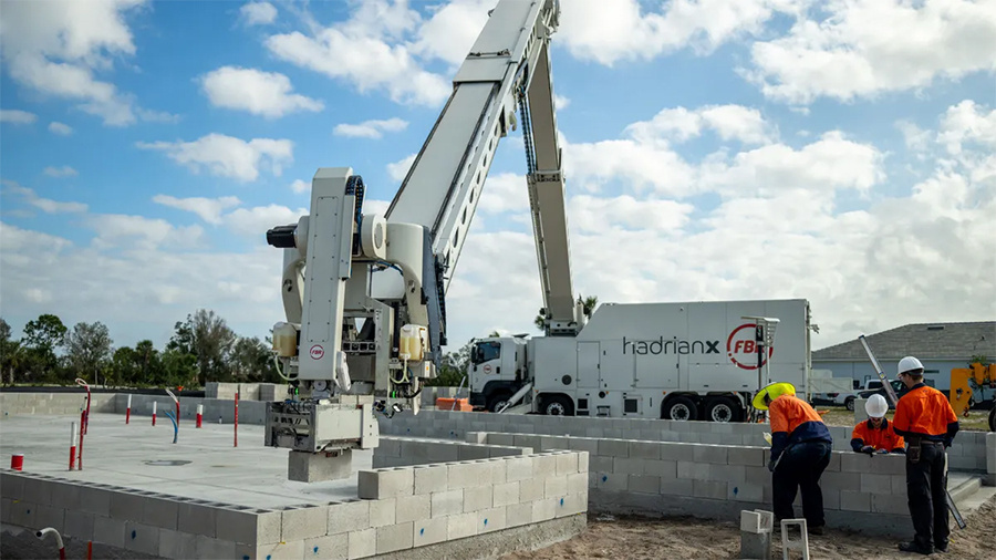 Hadrian X – это инновационная разработка компании PulteGroup, способная возвести несущие стены за один рабочий день. Установка включает в себя использование автоматизированной системы с усовершенствованной роботизированной рукой, способной укладывать бетонные блоки. После укладки блоков они скрепляются специальным клеем, который обладает в два раза большей прочностью по сравнению с традиционным строительным раствором.