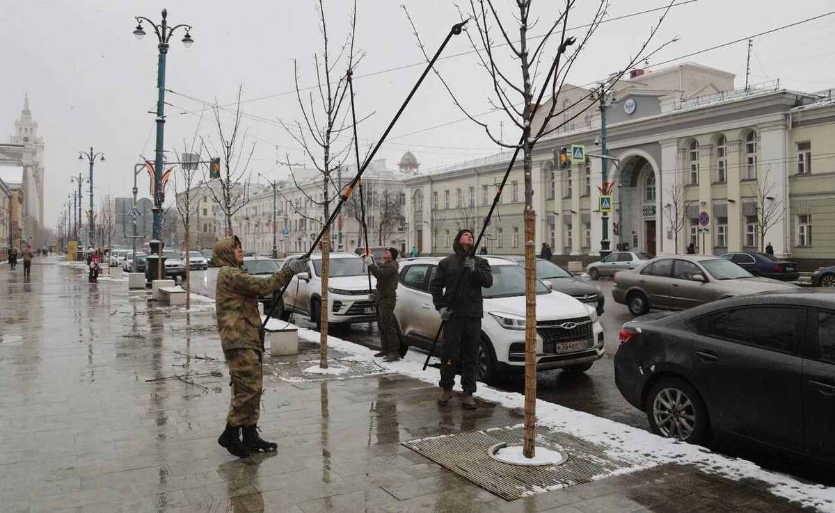Весенние работы по уходу за деревьями начались на проспекте Революции в Воронеже