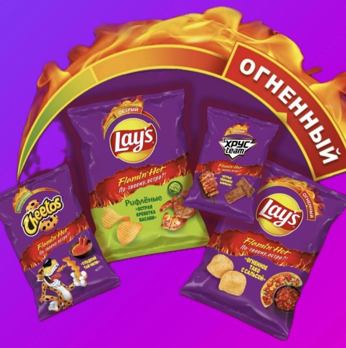 Тренд на острые закуски давно захватил мир, но Lay’s и Cheetos подошли к делу с размахом. Flamin’ Hot — это не просто «перчёно», это адреналин для вкусовых рецепторов. Бренды и