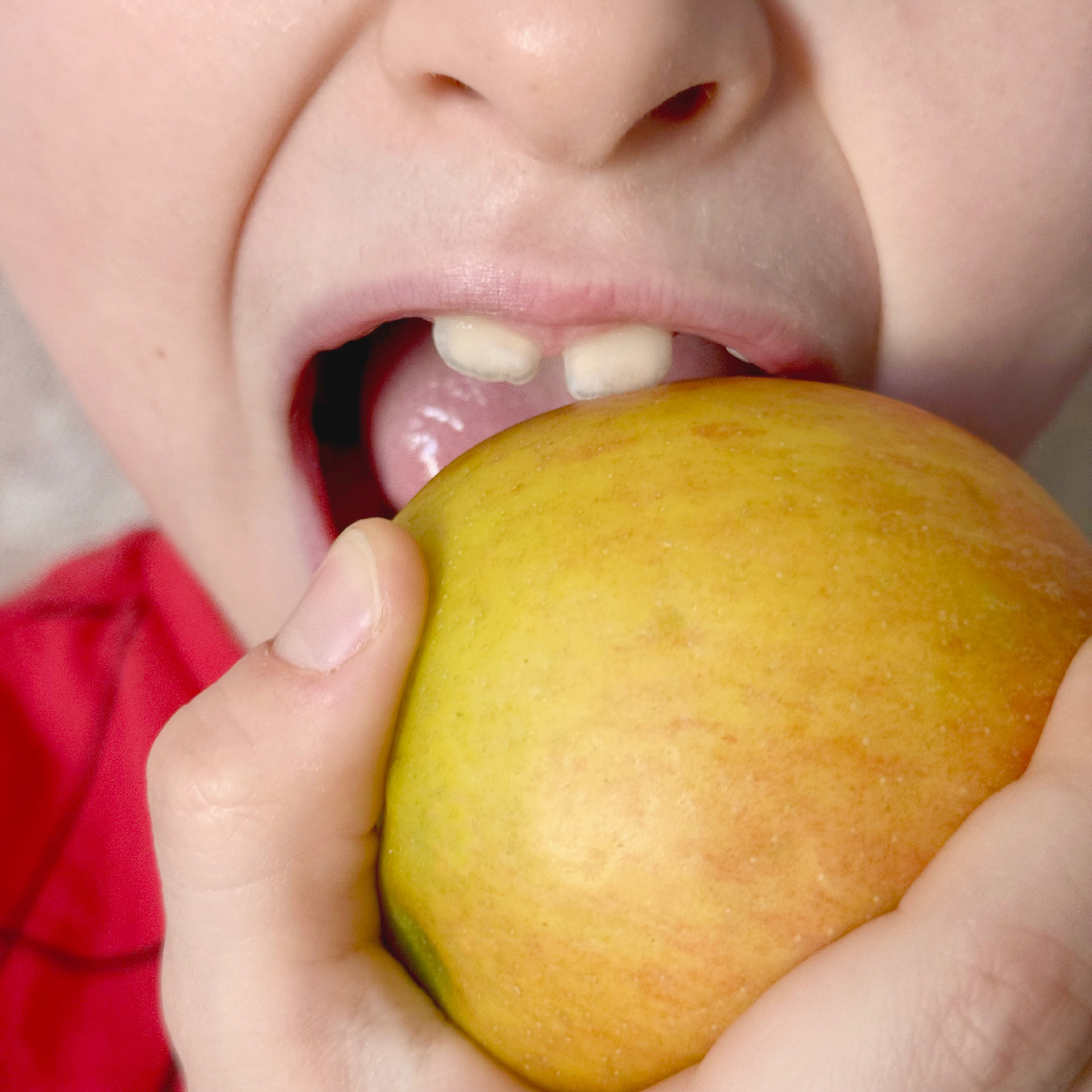 Кормлю я, значит, свою малышку кашей и думаю: насколько, действительно, питание влияет на правильное развитие челюстей? Все наслышаны, что грудное вскармливание очень полезно для малышей. И полезно, в том числе, для формирования правильного прикуса. Считается, что при сосании происходит интенсивное выдвижение челюсти у младенца, активная работа мышц для создания сильного вакуума, что хорошо стимулирует челюстной рост. К 2-м годам ребенок должен полностью перейти на взрослый рацион. К этому времени обычно полностью сформирован молочный прикус, ребенок умеет активно пережевывать пищу и глотать пищевой комок. С этого момента важно на ежедневной основе давать ребенку жесткую клетчатку: яблоки, морковку, капусту. По мере взросления орехи тоже должны присутствовать в рационе. И очень важно, чтобы ребенок ел мясо! Не только в виде котлет, тефтелей и наггетсов, а именно кусочки волокнистого мяса! Потому что в момент долгого пережевывания , например, кусочка говядины, жевательные мышцы бу
