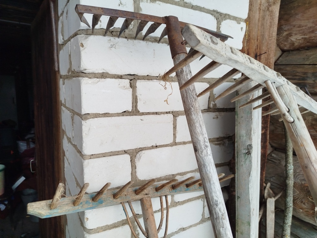 грабли нужно очищать от земли, а хранить такой инвентарь лучше в сухом и