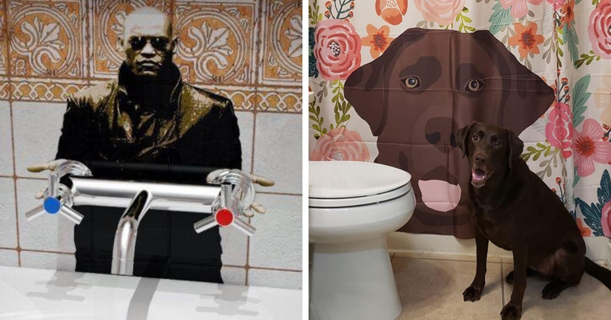 Так уж получается, что обычно при создании интерьера больше всего внимания уделяют каким-то основным помещениям, и на придумывание чего-то оригинального для ванной комнаты или уборной уже просто не остаётся фантазии. И всё же некоторые не упускают возможность проявить творческий подход даже в таком сугубо практичном месте, как вместилище раковины и кафеля! И, как оказывается, там можно придумать много чего интересного. Например, что-нибудь такое. Поэтому вместо зеркала он повесил над раковиной моё распечатанное селфи. Отличный способ держать ванную в полном порядке: пока всё не выглядит так, как на занавеске, надо убирать дальше. В первое время было немного некомфортно, а потом даже привыкаешь, что за тобой кто-то заботливо «приглядывает»! Говорят, что хорошие идеи часто приходят, когда принимаешь душ. В таких ванных это точно будет происходить!