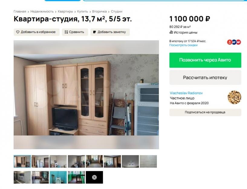 В Омске выставили на продажу малогабаритную студию площадью 13,7 квадратного метра по цене 1 100 000 рублей. Жильё расположено в Ленинском округе на последнем этаже пятиэтажного дома по адресу ул. Леконта, 6. Железнодорожный вокзал Омска находится в трёх минутах ходьбы от квартиры. В объявлении подчёркивается, что в комнате проведены вода и слив, что позволяет установить собственный смеситель. В помещении выполнен косметический ремонт. В числе бонусов — шкаф-стенка и стиральная машина, которые останутся новому владельцу. Душевая, санузел и кухня находятся в общем пользовании, но, по словам автора объявления, они содержатся под замком и в чистоте. Продавец готов к небольшому торгу, но отмечает, что цена уже максимально снижена. По словам владельца, за 1 миллион рублей в центре Омска сейчас можно купить разве что гараж.