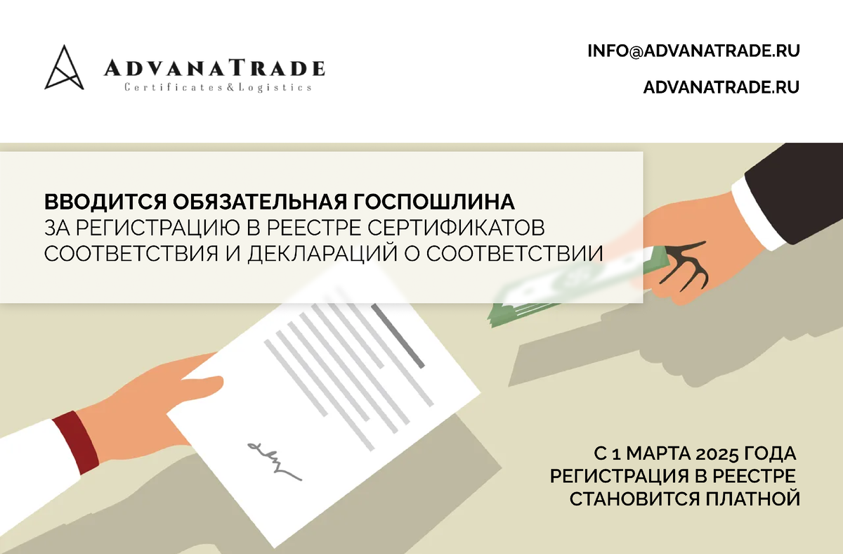 ✅ Вводится обязательная госпошлина за регистрацию в реестре сертификатов соответствия и деклараций о соответствии.