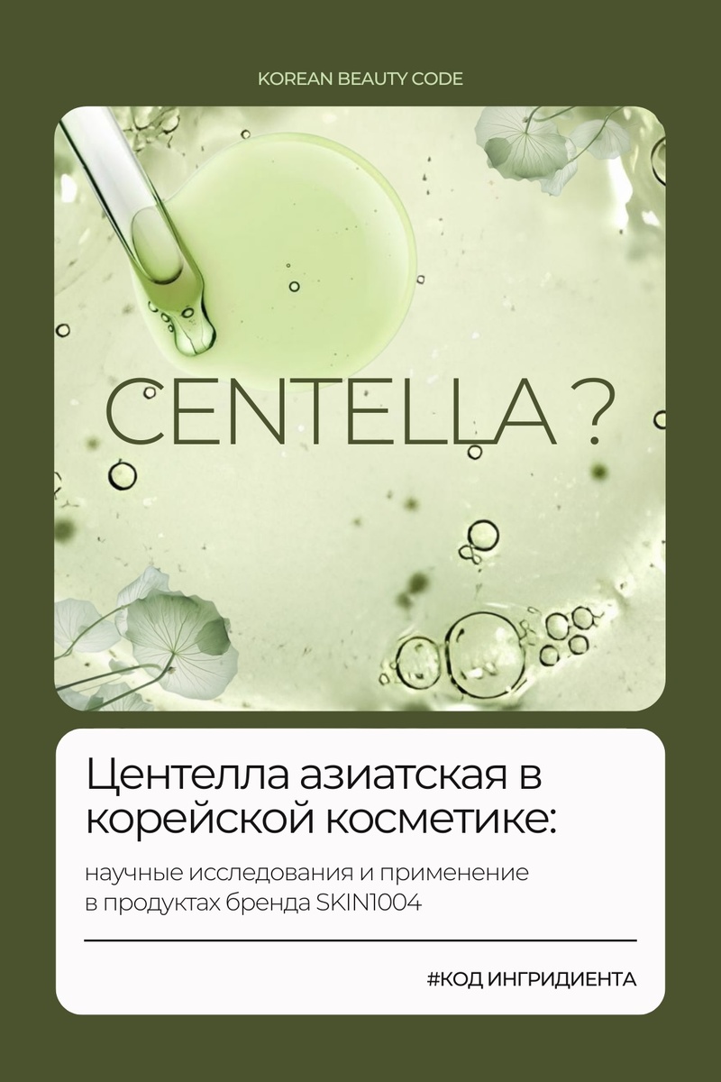 Центелла азиатская, известная также как готу кола, – многолетнее травянистое растение, традиционно используемое в аюрведической и китайской медицине. В последние годы научные исследования подтвердили уникальные свойства этого растения, что привело к его широкому применению в косметологии. Бренд SKIN1004 использует центеллу азиатскую в качестве ключевого ингредиента своей линейки продуктов, предлагая научно обоснованные решения для ухода за кожей.🧴 Научно подтвержденные свойства центеллы азиатской: ⚡️Противовоспалительное действие: центелла азиатская содержит активные соединения, такие как азиатикозид и мадекассосид, которые ингибируют выработку провоспалительных цитокинов (интерлейкин-1β, TNF-α), что приводит к снижению воспаления и успокоению раздраженной кожи. Клинические исследования демонстрируют эффективность центеллы азиатской в уменьшении покраснения и отечности кожи. ⚡️Ранозаживляющее действие: центелла азиатская стимулирует синтез коллагена I и III типов, что способствует р