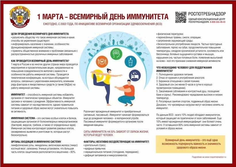 1 марта - Всемирный день иммунитета! Источник: Территориальный отдел Управления Роспотребнадзора по Республике Башкортостан в Дуванском, Белокатайском, Кигинском, Мечетлинском, Салаватском районах.