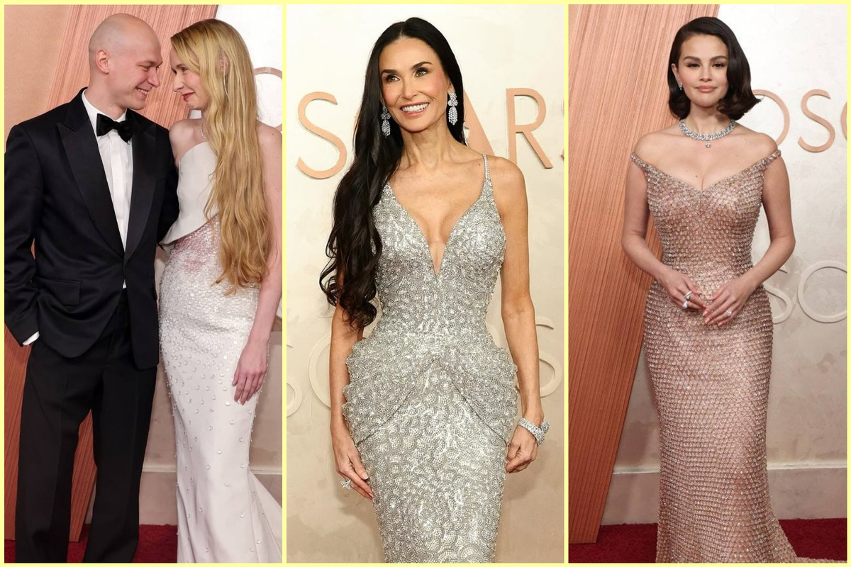 В команде блестящих, конечно же, оказалась и Деми Мур. Драматическую царственную внешность украшал глубокий вырез и присборенные детали платья Armani Prive, выполненного специально для актрисы специально на Оскар. Образ не лишен иронии: силуэт нарочито женственный, обилие блеска и камней отсылает к фамилии героини "Субстанции" - Спаркл, и на данную премию Деми нарядилась, как в последний раз! "Elisabeth's last Sparkle", - написал в соцсетях стилист звезды Бред Горески, выложив фото с подготовки к мероприятию. Организаторы премии вместе с ведущим Конаном О'Брайеном даже записали небольшой юмористический ролик, использовав кадры из фильма.
