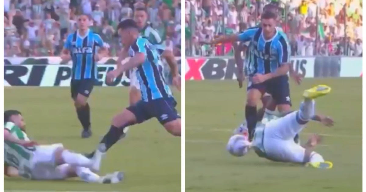 🎥 Игрок «Жувентуде» топово отобрал мяч – прыгнул, кувыркнулся и завершил маневр спиной 🤯