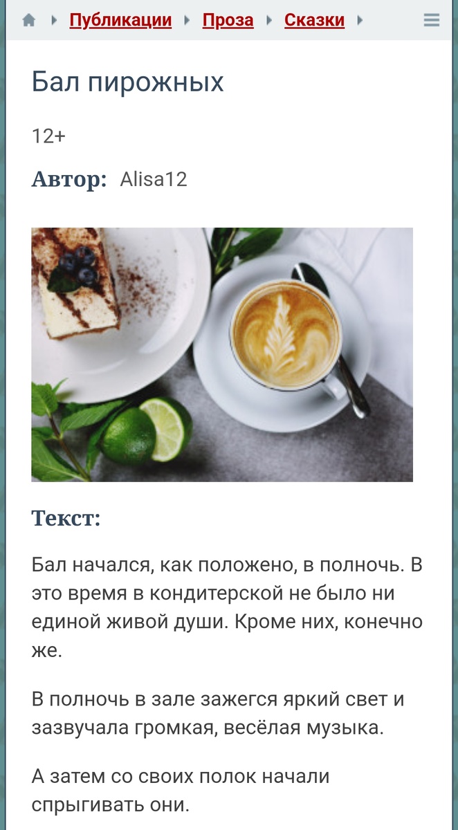 Произведение же, которое сегодня поселилось на сайте «Бумажный Слон», это сказка «Бал пирожных» и она стала 75 по счету произведением, выложенным на сайте.