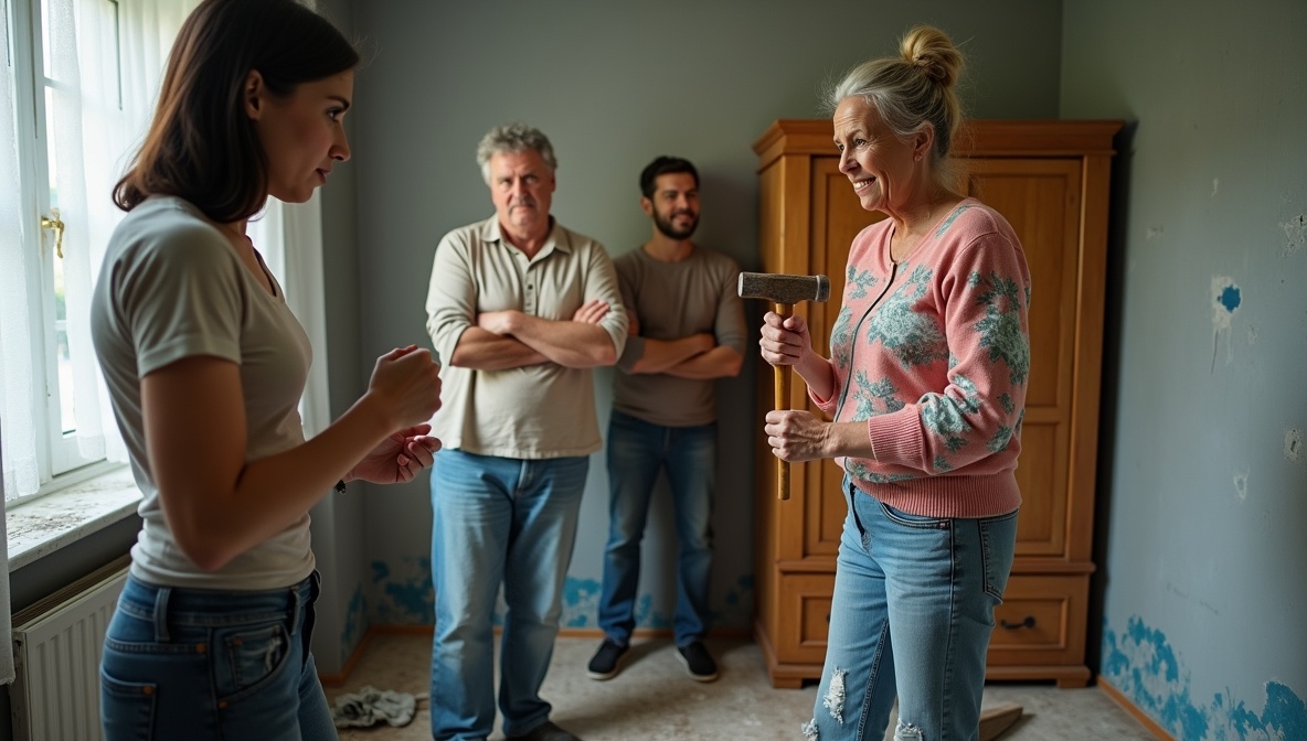— Я ремонт твой сломала, всё равно криво было! — заявила она, гордо выпрямив спину. — Ты тут наляпала как попало, дочка. Я всё исправила: стены ободрала, шкаф привезла — теперь по-людски будет.