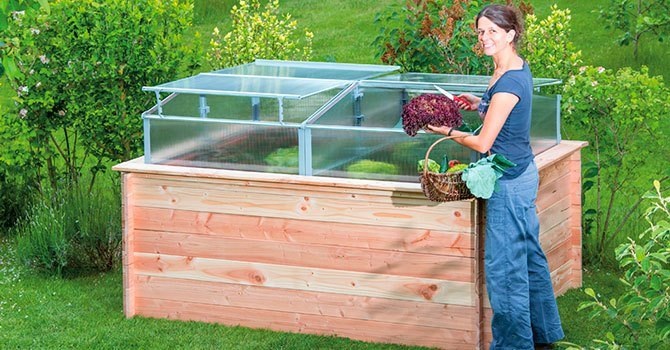 Улучшенная версия этой конструкции собирается из полипропиленовых труб, которые крепятся к деревянному основанию при помощи металлической перфорированной ленты и шуруповерта. Часто такой вариант является продолжением высокой грядки.