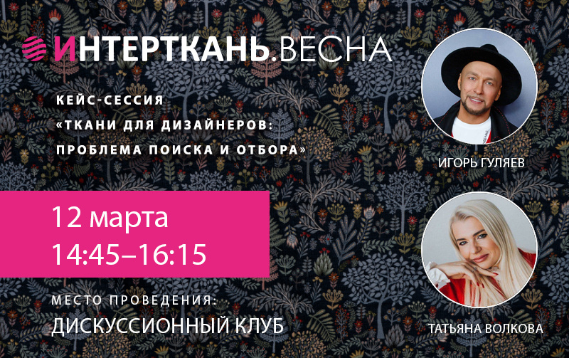 Приглашаем на кейс-сессию «Ткани для дизайнеров: проблема поиска и отбора. Разбор тканей, представленных на выставке» с Игорем Гуляевым и Татьяной Волковой. Посетители вместе с известным российским дизайнером Игорем Гуляевым смогут оценить представленные на выставке ткани и проанализировать актуальные тренды в текстильной индустрии. Игорь поделится практическими советами по выбору материалов и расскажет о том, как находить качественные ткани для авторских коллекций, а также поделится личным опытом работы с разными видами тканей.