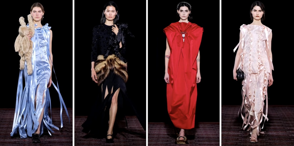 «Превращение прошлого в настоящее», — гласили поэтические заметки к шоу Симоны Роша, — «прошлое, настоящее, явь, притворство». Для своей осенне-зимней коллекции 2025 года дизайнер использовала свой архив, и даже бывшую площадку для показа, Goldsmiths' Hall, где в свое время проходил ее показ FW18.