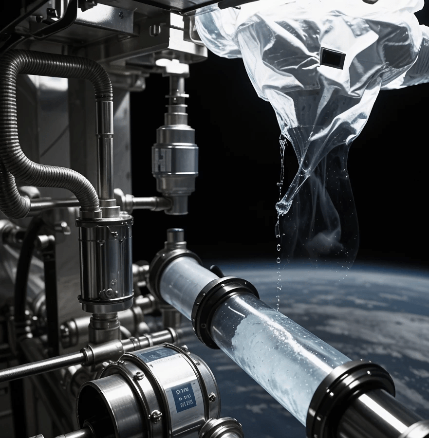 - Регенерация мочи и конденсата – на МКС работает система переработки воды, которая очищает влагу, выделяемую экипажем при дыхании, потоотделении и мочеиспускании. Специальные фильтры и дистилляционные установки позволяют получать питьевую воду.
