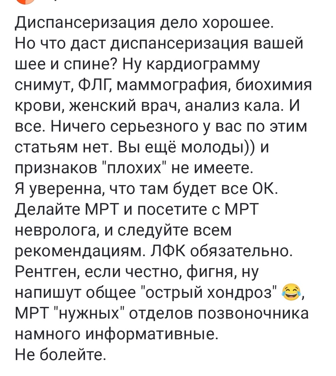 Когда мне врач назначит МРТ - я его обязательно сделаю. Пока таких показаний не было и оснований не доверять моему доктору у меня нет.
