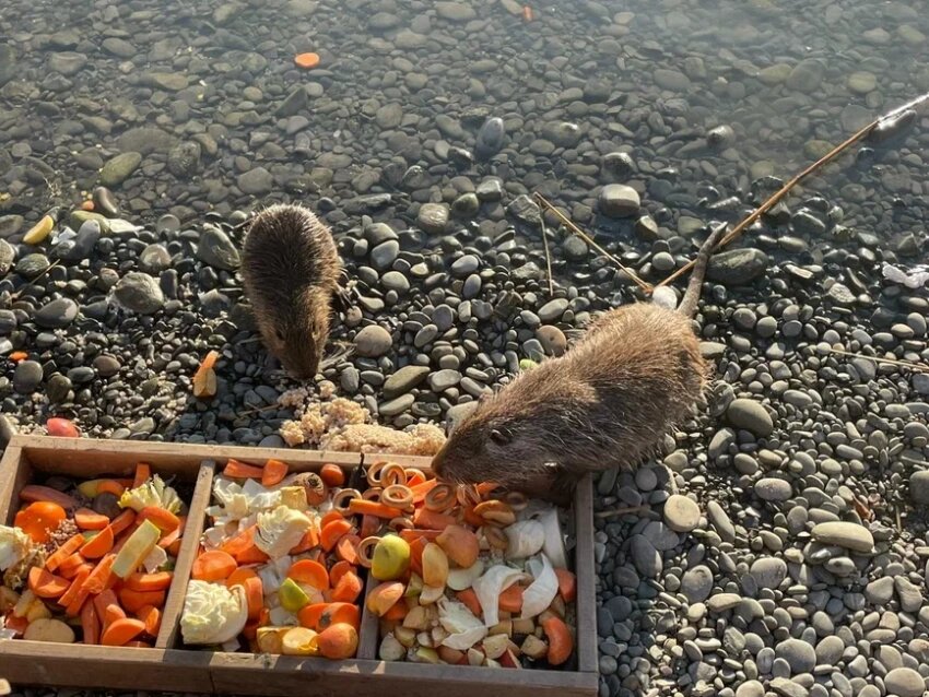 На Суджукской лагуне в Новороссийске появилось пополнение: семейство нутрий вывело к жителям более десяти детёнышей. О том, что нутрий на озере Солёном стало больше, стало известно ещё в декабре прошлого года. Именно тогда пара нутрий и стала родителями. Семейство пряталось в зарослях лагуны. Там же они переживали и суровую зиму, когда на Новороссийск обрушился норд-ост. На маленьких нутрий впервые же месяцы жизни выпало непростое испытание: холодный северо-восточный ветер со скоростью до 25 метров в секунду, а также заморозки, из-за которых набережная и лагуна покрылись коркой льда. Но именно благодаря льду, сковавшему лагуну, нутрии и смогли вывести своих детей на прогулку и покормить дарами, которые принесли местные жители. Они прошлись по льду прямо друг за другом за мамой и папой. Свидетелями этого события стали новороссийцы. Источник фото: https://t.me/chokolatela/4767 Нутрии появились на лагуне несколько лет назад. Их туда пересилил местный житель Александр, которого, к сожалени